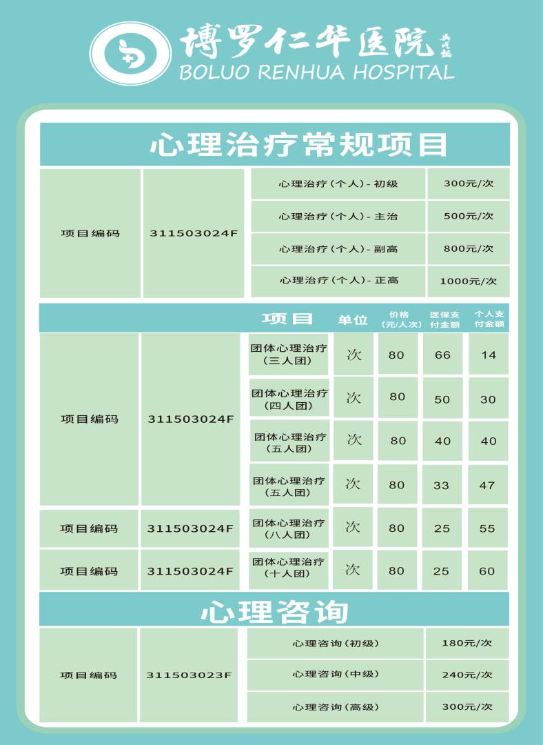 心理咨询、治疗价格公示